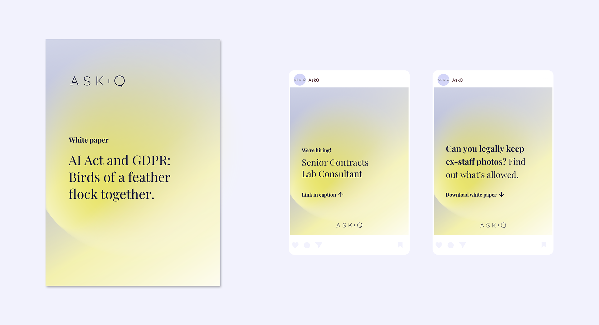 Ask Q is een juridisch dienstverleningsbedrijf dat interne juridische teams helpt te groeien en te transformeren door ondersteuning te bieden op het gebied van contracten, gegevensbescherming, legal operations en innovatie. De uitdaging was om de visuele identiteit te vernieuwen op een manier die flexibiliteit en een eigentijdse uitstraling toevoegt, terwijl het professionele en betrouwbare karakter van het bedrijf behouden blijft.